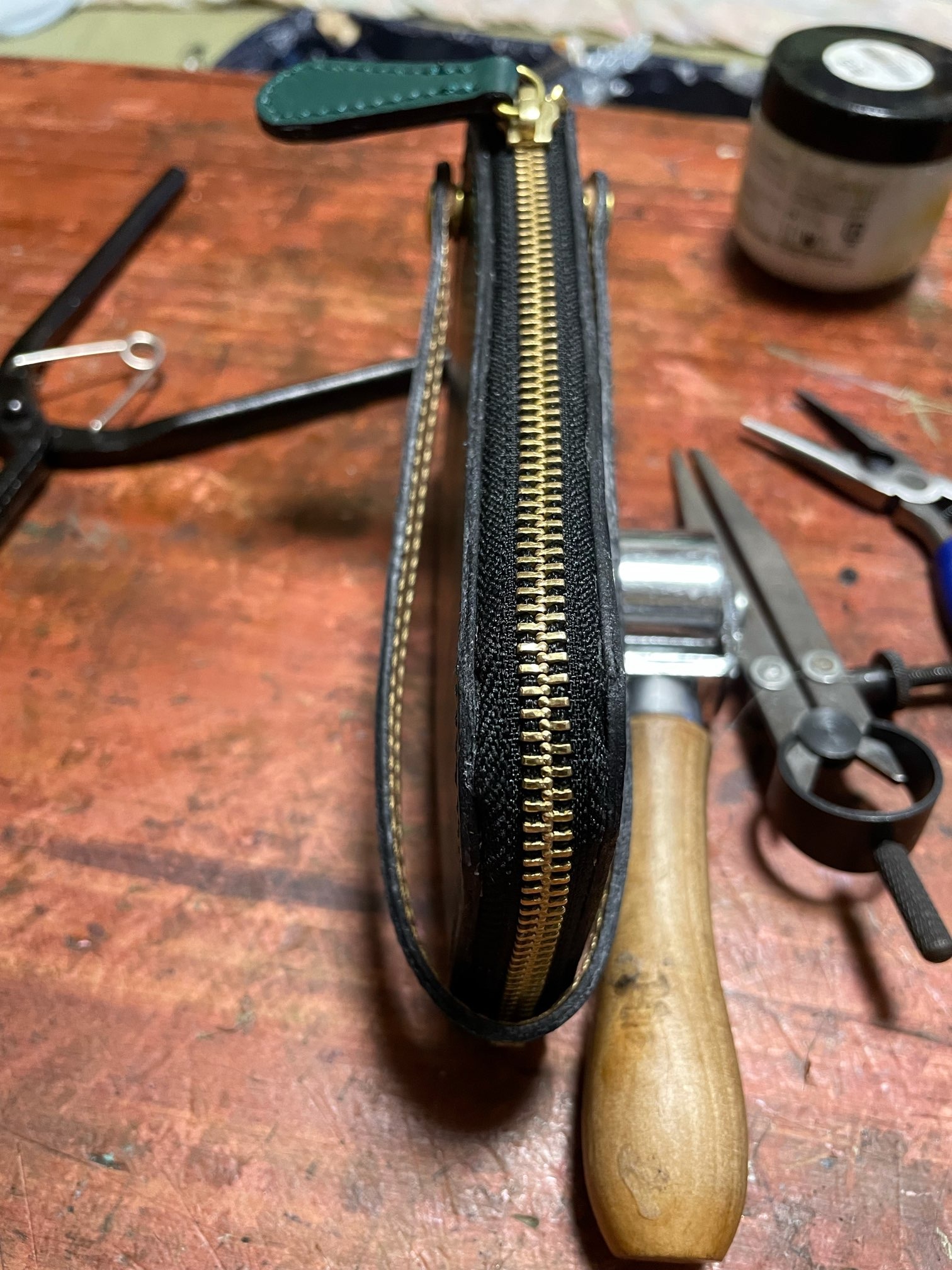注文品のハーフウォレット ブラックとグリーン | ミニランドセル工房 リボン